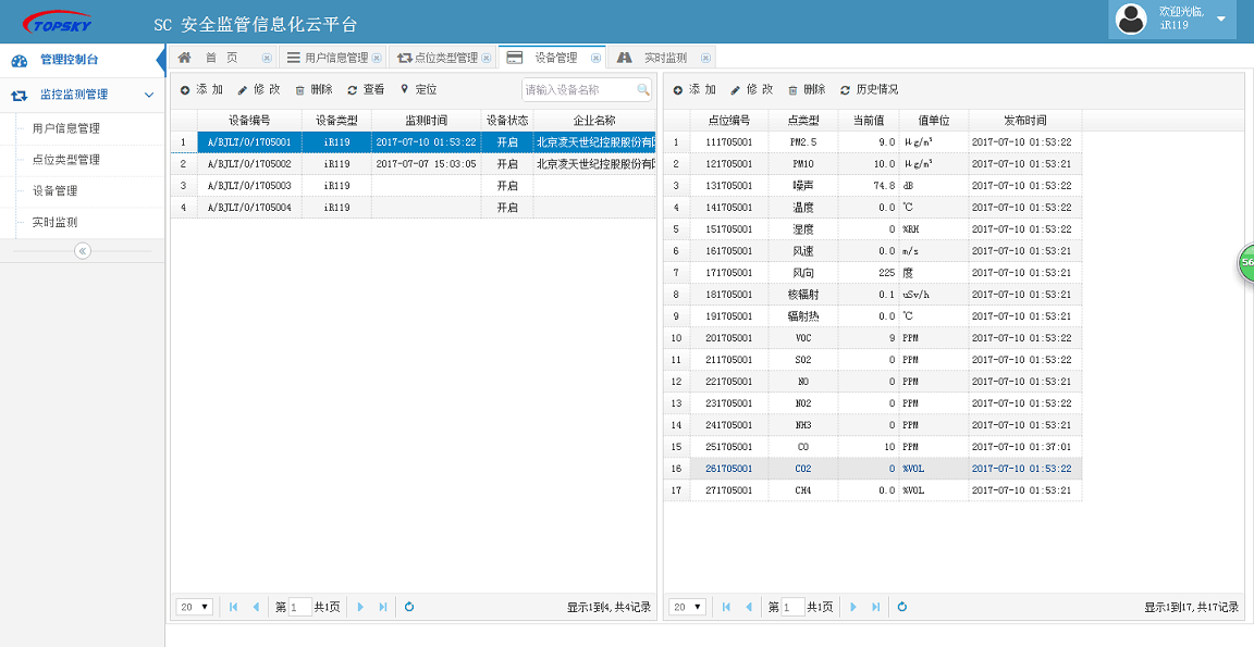 重大危險(xiǎn)源在線監(jiān)控及事故預(yù)警系統(tǒng) PC端(省級(jí)) |