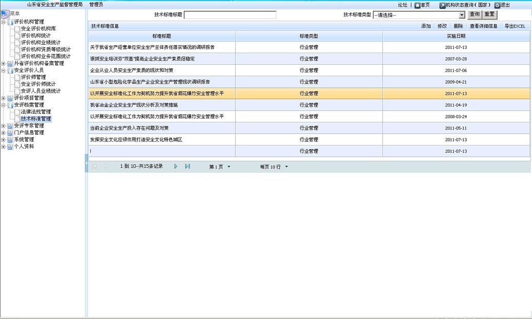 依據(jù)安全評(píng)價(jià)過(guò)程控制上報(bào)的數(shù)據(jù)對(duì)安評(píng)機(jī)構(gòu)業(yè)績(jī)、安全評(píng)價(jià)人員業(yè)績(jī)進(jìn)行智能統(tǒng)計(jì)匯總,并上報(bào)至國(guó)家安監(jiān)局。可根據(jù)安全評(píng)價(jià)機(jī)構(gòu)、年份、安全評(píng)價(jià)人員等條件進(jìn)行查詢,查看、導(dǎo)出、打印安評(píng)機(jī)構(gòu)或安全評(píng)價(jià)人員的業(yè)績(jī)表;可以統(tǒng)計(jì)分析比較各安評(píng)機(jī)構(gòu)的業(yè)績(jī),為安全評(píng)價(jià)機(jī)構(gòu)的定期考核提供依據(jù)。