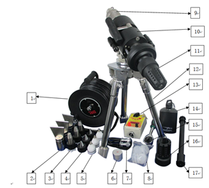 主機(jī)箱(A) 1個(gè) 配件箱(B) 1個(gè) 主機(jī) 1臺(tái) 三腳架 1個(gè) 水壺 1個(gè) 線盤 1個(gè) 起爆器 1個(gè) 電發(fā)火彈 10個(gè) 彈筒 1個(gè) 鏟形切刀彈 3個(gè) 錐形有機(jī)玻璃彈 3個(gè) 圓柱形鋼芯彈 3個(gè) 圓錐形鋼芯彈 3個(gè) 棘輪扳手 1個(gè) 退彈桿 1個(gè) 水堵 10個(gè) 連接短線 1根 合格證 1個(gè) 說明書 1份