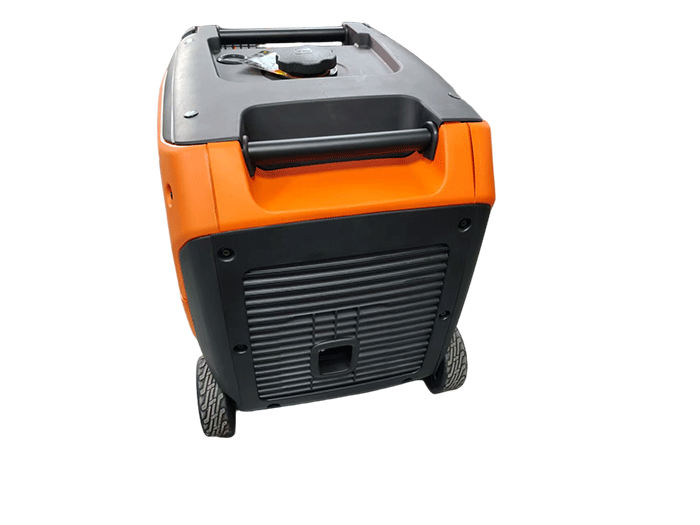 輸出功率為4千瓦,具備手拉啟動、電啟動和遙控啟動三種啟動方式。機身設(shè)有旋轉(zhuǎn)開關(guān)、手拉柄、加機油口等。配備消音器及防燙護罩,帶有兩個輪子,方便移動。面板上有兩個USB插孔、一個點煙器12V輸出、兩個230V輸出通用五孔插座、一個電壓表以及交流輸出兩個插孔和接地螺絲。