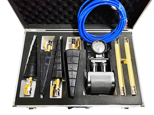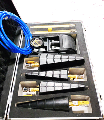 用于快速封堵背壓≦0.1Mpa,泄漏介質(zhì)溫度≦60℃的存儲罐、油罐車、液柜車裂縫,不需要拉伸帶。操作人員堵漏時將槍頭、槍桿、連接氣管、腳踏氣泵連接在一起,手持槍桿在安全距離外,將楔形或圓錐形密封袋插入于直徑15至60毫米的裂縫里面,以及直徑30至90毫米的漏孔內(nèi),并迅速充氣密封裂縫。