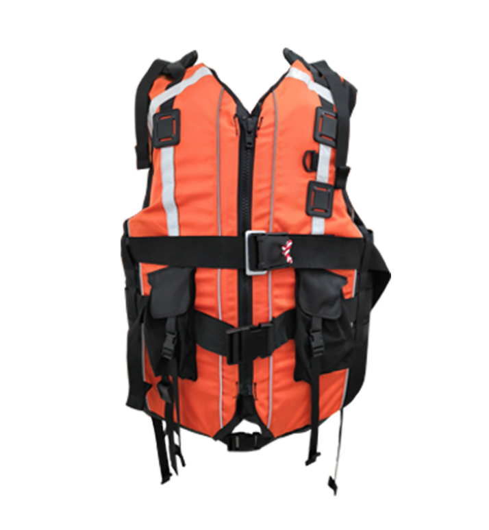 面料采用方形針織壓力點和1680D材質(zhì)的Cordura?面料使得該款救生衣足夠應對復雜的水域活動。采用背心式設(shè)計,胸襟采用YKK塑鋼開口拉鏈,并使用塑料拉頭浮力片固定于布料夾層內(nèi),后領(lǐng)口增加手提式松緊提拉帶設(shè)計,方便于攜帶。