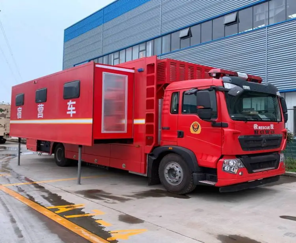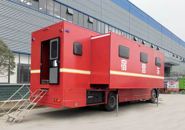 3、整車自行式設計,機動性能好,適合公路運輸,可提供野外宿營、洗漱、休閑等功能,保障能力強;整車配有空氣調節(jié)系統(tǒng),生活舒適度好,可雙側擴展,空間利用率大。