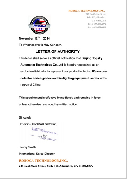 2014年8月26日,北京凌天成為美國ROBOCA(理諾)公司戰(zhàn)術(shù)警用裝備與救援裝備總代理