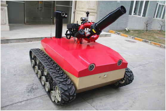 防爆消防滅火偵察機(jī)器人采用耐高溫履帶避震式底盤設(shè)計(jì),能夠適應(yīng)救援環(huán)境中各種復(fù)雜地面。裝配環(huán)境檢測裝置,在滅火的同時(shí)對(duì)現(xiàn)場環(huán)境數(shù)據(jù)進(jìn)行偵測。機(jī)器人由機(jī)器人主體,消防炮,環(huán)境檢測裝置,遙控箱四部分組成。主要作用是代替消防隊(duì)員進(jìn)入易燃易爆、有毒、缺氧、濃煙等危險(xiǎn)災(zāi)害事故現(xiàn)場實(shí)施有效的滅火救援、化學(xué)檢測和火場偵察。