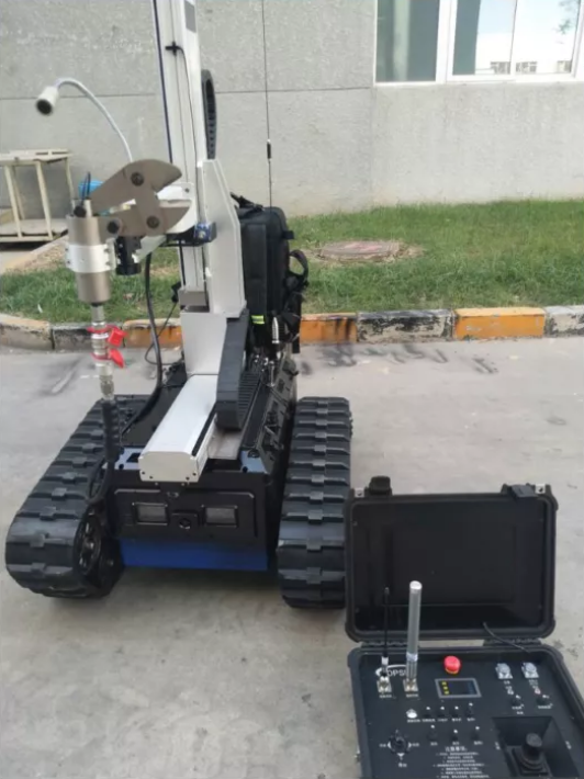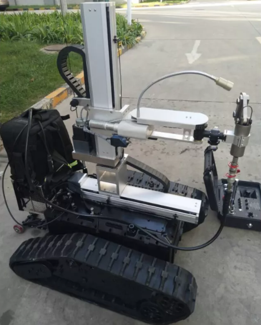 破拆機器人,也可用于遠程遙控偵察人難以達到的地形的一種機器人。機器人配備十字滑臺,靈活調(diào)動工具的工作位置,可加載手持式切割機,還可以加載獨立電動液壓工具其包括:微型開門器、微型擴張器、微型剪切器之間可以靈活更換,底盤采用履帶結構,能適應各種地形快速作戰(zhàn)部署。