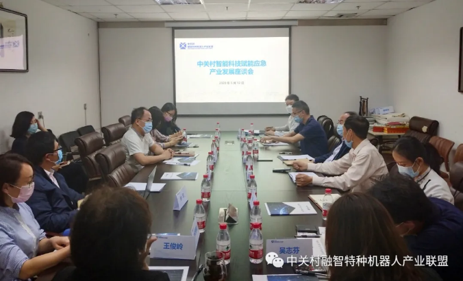 中關(guān)村管委會產(chǎn)業(yè)發(fā)展處研調(diào)員陳星、楊璇,專程到會上指導(dǎo),并與參會單位負責(zé)人,就特種機器人產(chǎn)業(yè)如何賦能社會應(yīng)急需求,展開了熱烈的討論。