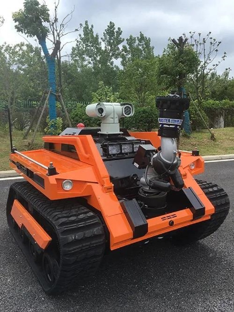 消防機(jī)器人滅火系統(tǒng)可有效的替代拖車炮、移動(dòng)炮,利用自身動(dòng)力將消防炮遙控至需要的位置;有效的替代消防戰(zhàn)士靠近火源及危險(xiǎn)場所進(jìn)行偵察、滅火等作業(yè),操作人員最大可在距離火源1000米以外進(jìn)行滅火作戰(zhàn),避免不必要的傷亡。適用場合包括并不限于公(鐵)路隧道火災(zāi),地鐵車站與隧道火災(zāi),地下設(shè)施與貨場火災(zāi),大跨度大空間火災(zāi), 石化油庫與煉制廠火災(zāi),大面積毒氣與煙霧事故,危險(xiǎn)火災(zāi)目標(biāo)的偵查、進(jìn)攻與掩護(hù),人員不易接近的火災(zāi)撲救,危險(xiǎn)場合的搶險(xiǎn)救援。