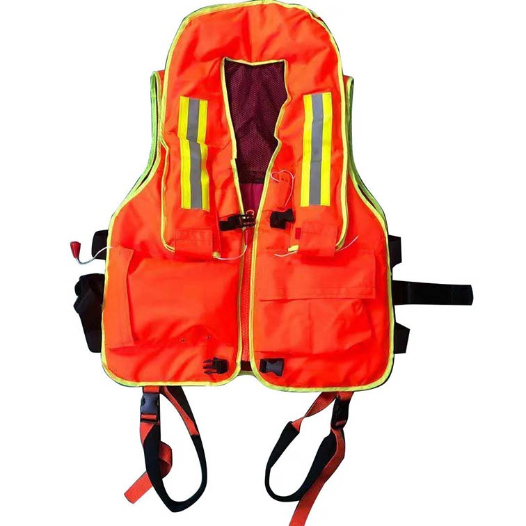 面料采用方形針織壓力點(diǎn)和1680D材質(zhì)的Cordura?面料使得該款救生衣足夠應(yīng)對(duì)復(fù)雜的水域活動(dòng)。采用背心式設(shè)計(jì),胸襟采用YKK塑鋼開口拉鏈,并使用塑料拉頭浮力片固定于布料夾層內(nèi),后領(lǐng)口增加手提式松緊提拉帶設(shè)計(jì),方便于攜帶。