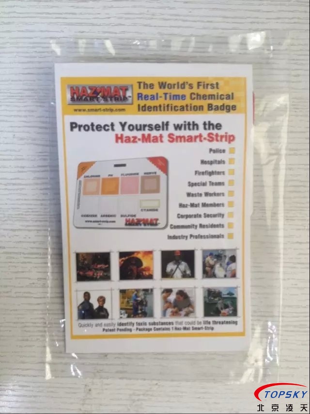 l 經(jīng)特殊設(shè)計(jì)的指示貼片可檢測(cè)到多達(dá)八種化學(xué)成分包括氯氣,氟化物,神經(jīng)毒氣,氧化劑,砷,硫化氫,氰化物,酸堿度;