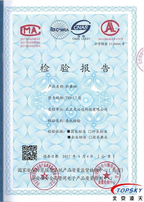 本產(chǎn)品通過公安部安全與電子產(chǎn)品檢測(cè)檢驗(yàn)中心檢測(cè),檢測(cè)報(bào)告編號(hào):公京檢第1530464號(hào)。
