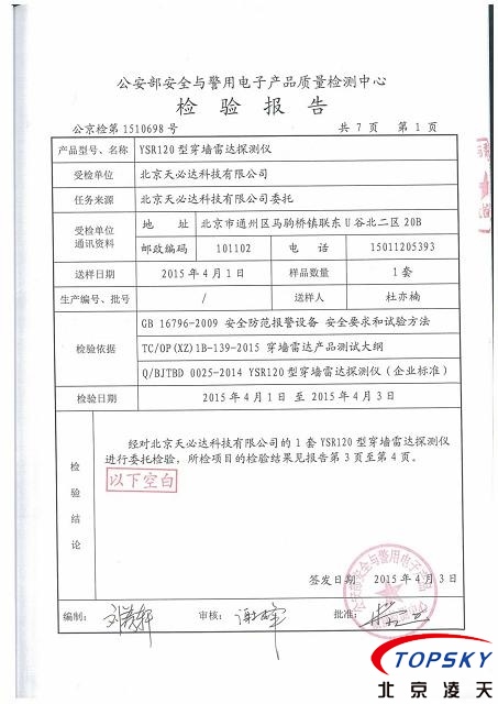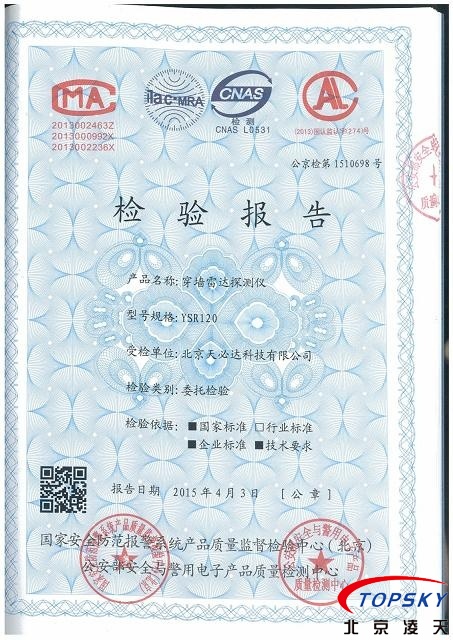 近日,北京天必達(dá)科技有限公司研發(fā)的YSR-120穿墻雷達(dá)探測(cè)儀通過(guò)公安部安全與電子產(chǎn)品檢測(cè)檢驗(yàn)中心檢驗(yàn),檢測(cè)報(bào)告編號(hào):公京檢第1510698號(hào)。