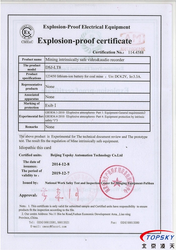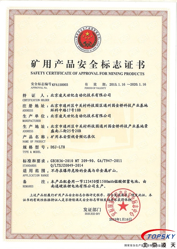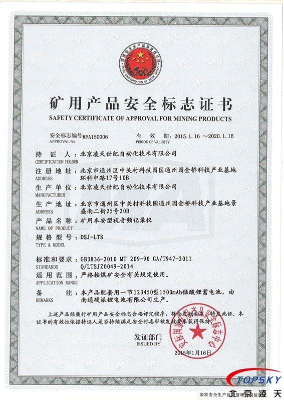 DSJ-LT8防爆執(zhí)法記錄儀取得煤安認證