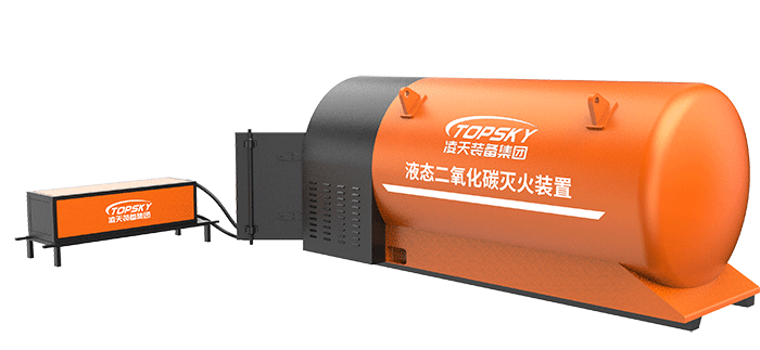 液態(tài)二氧化碳滅火裝置,采用平板車為運載平臺,搭載液態(tài)二氧化碳滅火模塊,采用液態(tài)二氧化碳為滅火劑,運輸至井下火區(qū)近附,經(jīng)自增壓調(diào)控系統(tǒng)實現(xiàn)罐內(nèi)穩(wěn)壓,并通過遠(yuǎn)距離輸送管路將液體從罐內(nèi)向密閉火區(qū)噴射,利用其急速膨脹氣化和吸熱效率高的物理特性,可實現(xiàn)惰性降氧,吸熱降溫,吸附阻化等功能,從而可快速進(jìn)行井下煤層自燃火災(zāi)的預(yù)防與撲滅等。
