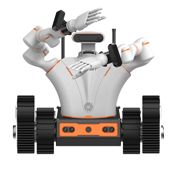 雙機械臂具備16個自由度,單手關節(jié)22個自由度,可以實現(xiàn)多姿態(tài)工作。