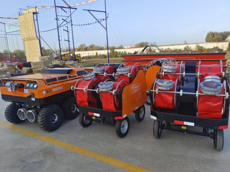 供排水機(jī)器人配有大口徑水帶收放車,采用電動(dòng)快速鋪設(shè)系統(tǒng),操作簡單,實(shí)用性強(qiáng)等特點(diǎn),解決了人力收放水帶的不便利性,增加了救援時(shí)間。