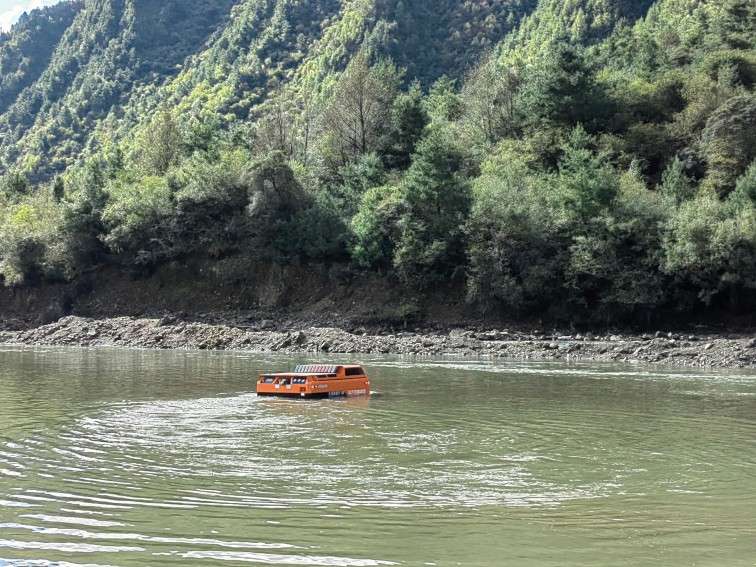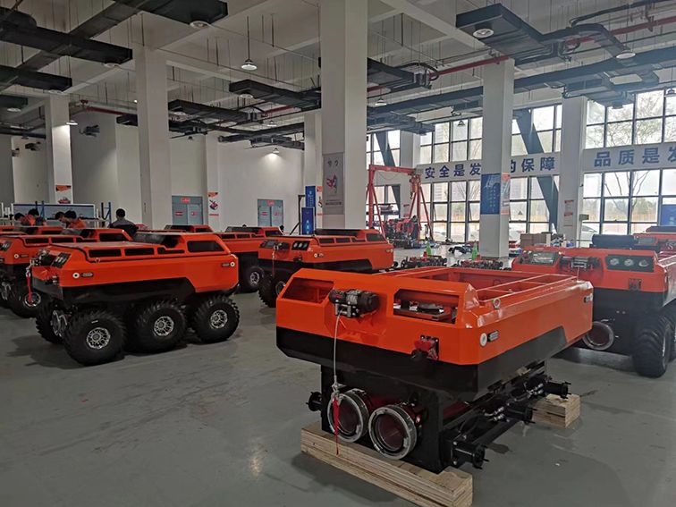 采用6×6輪式底盤,液壓驅(qū)動(dòng),裝有真空輪胎,另加配水下推進(jìn)器,增加水中行進(jìn)效率,水陸兩棲,可全地形行駛;