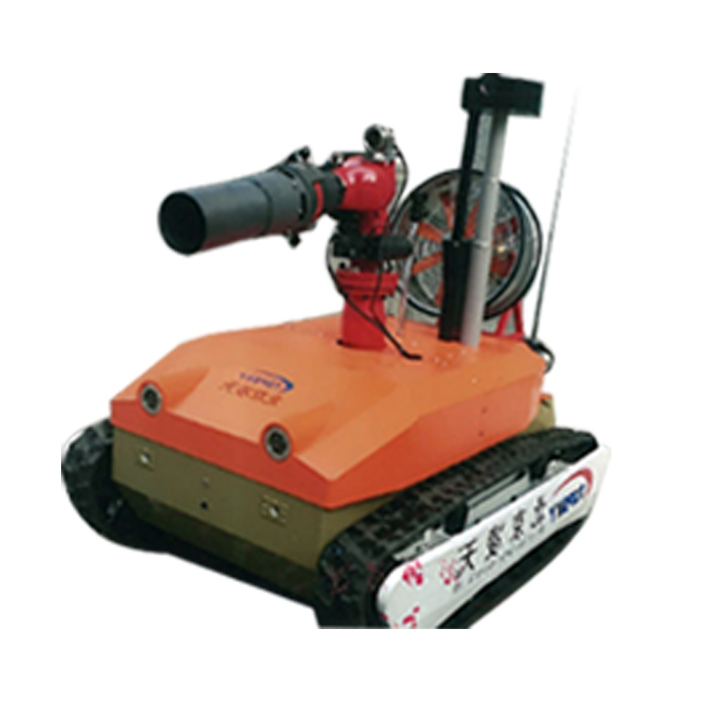 RXR-MY120BD消防滅火排煙機(jī)器人作為特種機(jī)器人的一種,采用鋰電池電源作為動(dòng)力電源,使用無(wú)線遙控的方式遠(yuǎn)距離操控消防滅火排煙機(jī)器人??墒褂糜诟鞣N大型石油化工企業(yè),隧道、地鐵等不斷增多,油品燃?xì)?、毒氣泄漏炸、隧道、地鐵坍塌等災(zāi)害隱患多發(fā)地,滅火排煙機(jī)器人在搶險(xiǎn)救援中發(fā)揮舉足輕重的作用,主要替代消防員在?;饒?chǎng)或濃煙火災(zāi)現(xiàn)場(chǎng)救援的專(zhuān)用設(shè)備。本產(chǎn)品具備滅火、排煙、音視頻偵察、有毒有害氣體偵察、災(zāi)區(qū)環(huán)境偵察功能;