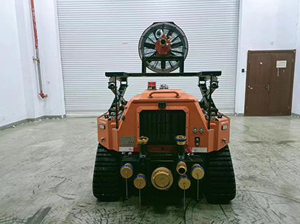 消防排煙滅火機(jī)器人是一款履帶式中型油動(dòng)力消防滅火機(jī)器人,采用柴油發(fā)動(dòng)機(jī)為動(dòng)力,閉式液壓系統(tǒng)驅(qū)動(dòng)ASV橡膠履帶進(jìn)行高速行走,搭載了每秒120升的大流量消防炮,具有60000m3/h的可升降大流量水力排煙機(jī),及V型推鏟,攜帶多種檢測(cè)、監(jiān)控傳感檢測(cè)裝置,對(duì)火災(zāi)場(chǎng)所實(shí)施遠(yuǎn)程實(shí)時(shí)監(jiān)控,進(jìn)行火災(zāi)撲滅、煙霧及有毒有害氣體驅(qū)散,道路開辟清障。