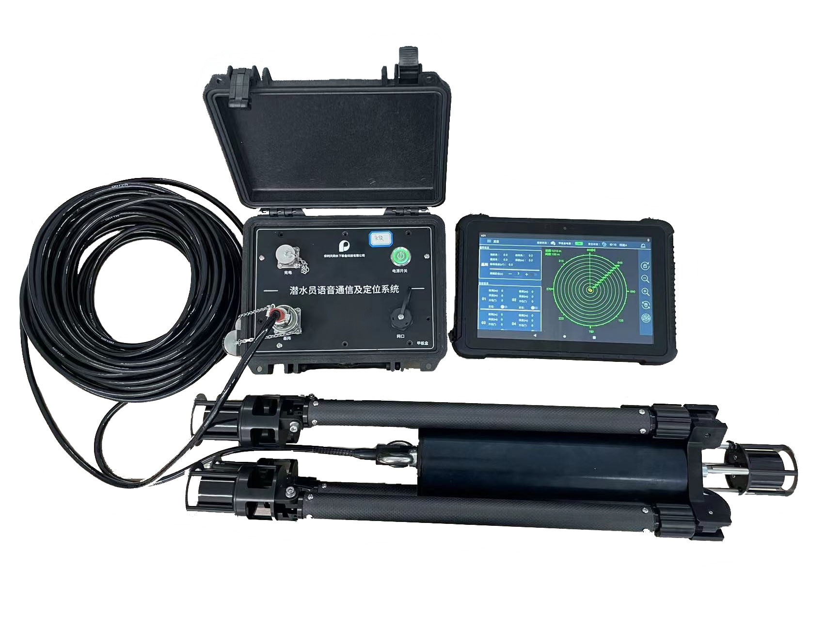 用于潛水員語音、數(shù)字通信及定位,具備水面指控系統(tǒng)、水面定位基陣、 水下潛水員單兵穿戴和顯示系統(tǒng)。通信距離1000-1500m,工作深度≥60m。