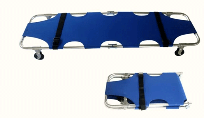 本產(chǎn)品又名擔(dān)架、折疊擔(dān)架、鋁合金擔(dān)架、鋁合金折疊擔(dān)架、簡(jiǎn)易擔(dān)架等。擔(dān)架面采用藍(lán)色牛津革面制成,使病員躺臥更舒適。采用一端兩輪一端兩支撐腳設(shè)計(jì),在人手不夠的情況下抬起支撐腳一端即可轉(zhuǎn)移病人。支撐腳及腳輪可折看收納,使用更方便。本產(chǎn)品配備兩根安全綁帶,保證運(yùn)輸途中病人的安全