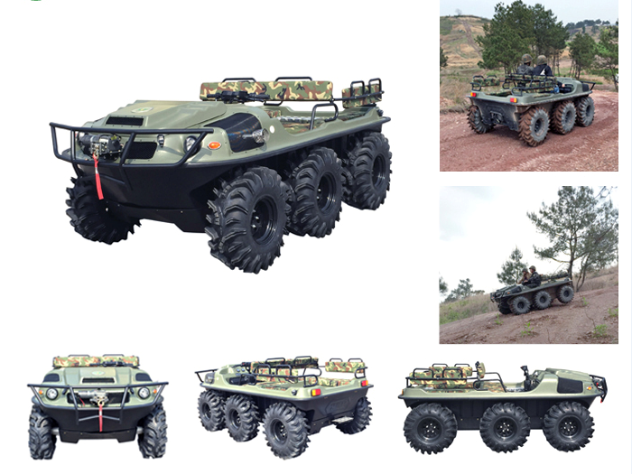 最高車速: 陸地:60km/h 水上:5km/h(輪胎劃水)/12km/h(15HP舷外機(jī))
