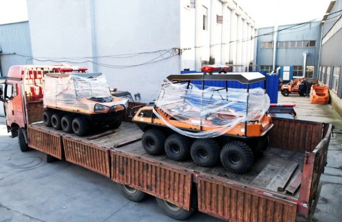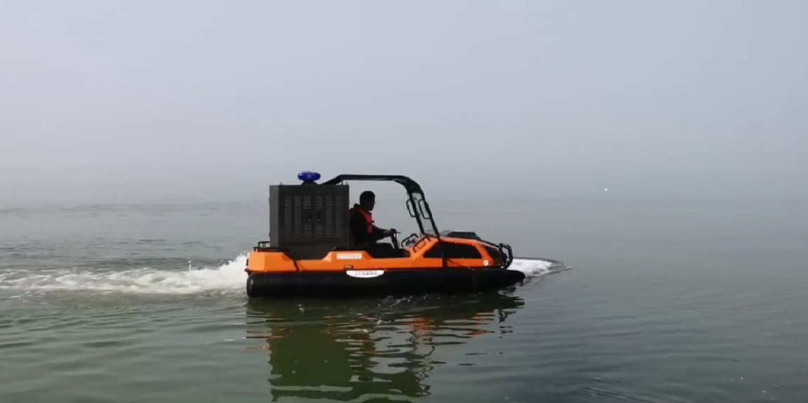 針對水災(zāi)頻發(fā)的地區(qū),水域救援任務(wù)必不可少。但往往洪澇災(zāi)害、城市內(nèi)澇往往伴隨著惡劣的天氣和崎嶇的地形,沖鋒舟需要多次搭載不同交通工具并數(shù)次轉(zhuǎn)移,水陸兩棲全地形車可以輕松通過水淹、泥濘、沼澤等環(huán)境,無需人力搬運,實現(xiàn)陸地駕駛和水中行走自由切換,以最快的時效抵達(dá)現(xiàn)場實施救援。