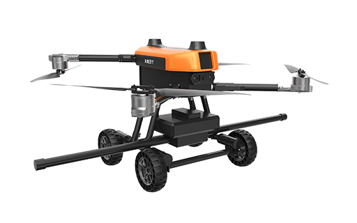 本無人機為北京凌天智能裝備集團研發(fā)的陸空兩棲航磁探測無人機,采用四旋翼機身設(shè)計,載重大,續(xù)航長,并且機體折疊標(biāo)準(zhǔn)化負(fù)載接口。同時,該無人機具備陸空兩棲功能,可以在地面行駛,行走系統(tǒng)可快拆。