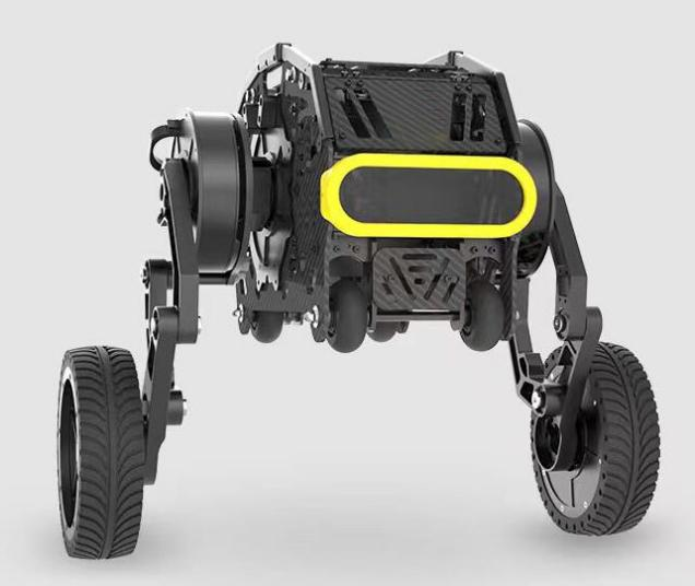 本款雙足機(jī)器人是一種足部裝有動(dòng)力輪子的雙足平衡式移動(dòng)機(jī)器人。這臺(tái)機(jī)器人可以將輪式機(jī)器人的速度優(yōu)勢,和足式機(jī)器人的機(jī)動(dòng)越障性能結(jié)合,可以在多地形下高效、靈活的運(yùn)動(dòng)。這種機(jī)器人也是當(dāng)下學(xué)術(shù)研究的熱點(diǎn)。機(jī)器人的腿部和機(jī)體結(jié)構(gòu)由本末科技自主研發(fā)設(shè)計(jì),總共由六個(gè)直驅(qū)型關(guān)節(jié)電機(jī)M1502D驅(qū)動(dòng)。