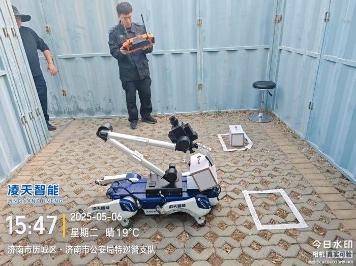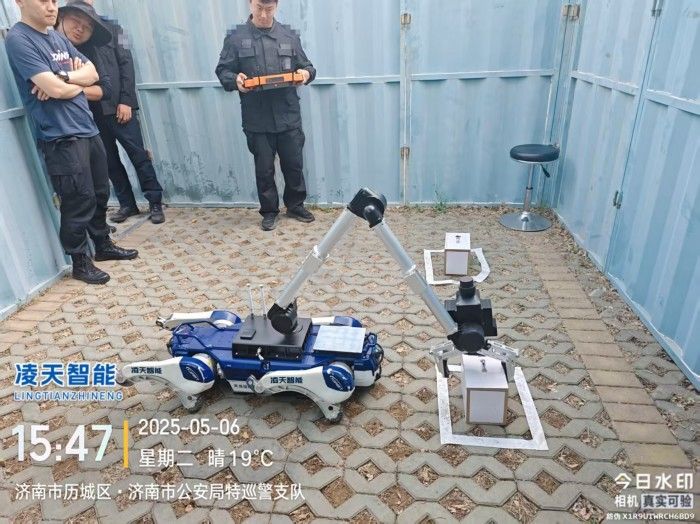 6自由度排爆機械臂能實現(xiàn)不同角度旋轉(zhuǎn),最大可抓舉10kg的重物,機械臂裝載爆炸物銷毀器,可現(xiàn)場摧毀爆炸物,四足式底盤,能適應(yīng)各種地形快速作戰(zhàn)部署。