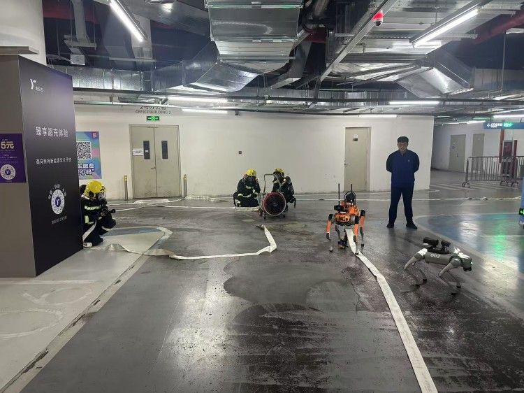 四足機器人搭載4D激光雷達,360°×90°半球超廣角感知能力,超低盲點,可以做出跳躍、伸展、握手、高興、跳人、坐下等手勢; 內(nèi)置長續(xù)航電池,滿足消防偵察救援需求。