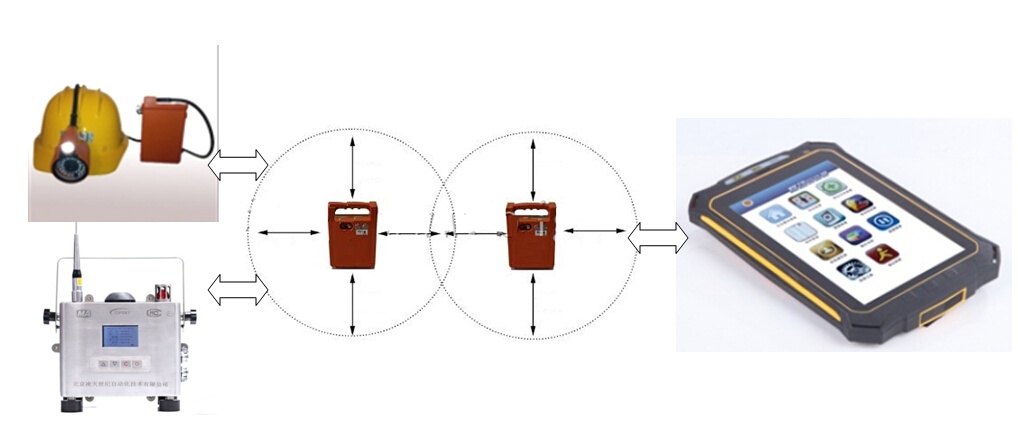 該系統(tǒng)采用無線連接方式的信號中繼與傳輸,應(yīng)急通信網(wǎng)絡(luò)的通信距離可達(dá)20公里。無線通信網(wǎng)絡(luò)采用自組織、自愈合方式快速形成多跳鏈狀或網(wǎng)狀網(wǎng)拓?fù)浣Y(jié)構(gòu),無線通信距離不小于2000米,具有快速部署、高帶寬、低時延、可靠性強(qiáng)等特點(diǎn)。井下救援人員或工作人員,通過佩戴礦用本安型平板計(jì)算機(jī)、配套的低照度攝像頭自帶語音通話、無線中繼器、多參數(shù)測定儀等裝備,將現(xiàn)場的實(shí)時圖像、語音、環(huán)境參數(shù)等信息實(shí)時回傳到指揮平臺,調(diào)度指揮人員可以實(shí)時了解現(xiàn)場情況,并對現(xiàn)場人員進(jìn)行調(diào)度指揮。