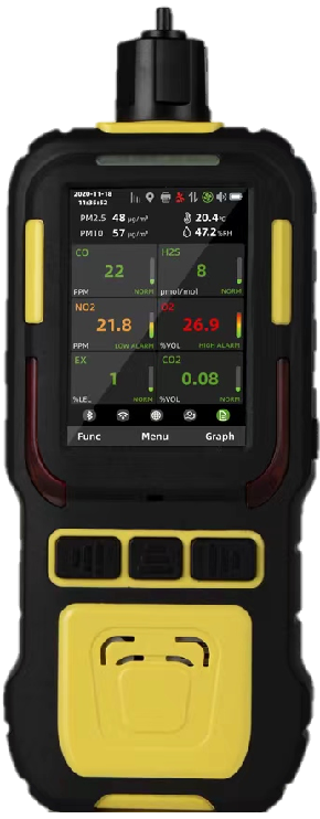無線復合氣體探測儀(以下簡稱探測儀)支持二十多種智能氣體傳感器,可同時連續(xù)檢測5種氣體的濃度(氣體種類可自由組合系統(tǒng)智能識別)、粉塵濃度(PM2.5、PM10)、核輻射、溫濕度。將采集到的氣體數(shù)據(jù)、GPS位置、粉塵濃度、核輻射、溫濕度等數(shù)據(jù)通過4G上傳至監(jiān)管后臺實現(xiàn)無線管理;探測儀也可以實現(xiàn)現(xiàn)場實時數(shù)據(jù)一鍵打印功能。探測儀具有氣體濃度調(diào)校標定、濃度值超限報警功能、STEL超限報警和TWA超限報警,一旦設(shè)備采集數(shù)據(jù)濃度值超限,設(shè)備立即開啟聲光振動報警進行警示,并將此時數(shù)據(jù)同步上傳至平臺??蓪⒍嗯_探測儀的監(jiān)測、監(jiān)控信息上傳,并建立特殊作業(yè)場所多功能監(jiān)測監(jiān)控系統(tǒng)平臺,保障作業(yè)人員的安全。采用新一代主流外觀設(shè)計,美觀耐用。