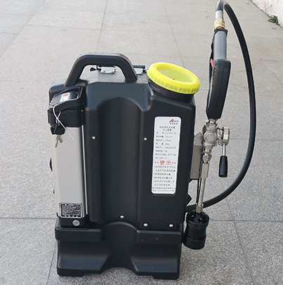 4、連接軟管的爆破壓力大于額定工作壓力的2倍;儲(chǔ)液桶體上帶有固定把手,方便細(xì)水霧的提攜和使用,電池采用可循環(huán)使用的分離充電式。