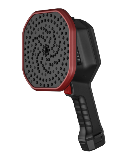 本產(chǎn)品是一款手持式的工業(yè)聲學(xué)成像儀,廣泛應(yīng)用于電力局放,帶壓或真空條件下的氣體泄漏檢測、氣密性檢測、設(shè)備異響定位等多種場景。儀器利用麥克風(fēng)陣列波束形成技術(shù)獲取聲源分布數(shù)據(jù),并配合高清攝像頭實(shí)時(shí)采集視頻畫面,通過將聲源分布數(shù)據(jù)同視頻圖像進(jìn)行聲像融合,把變化的聲源動態(tài)的呈現(xiàn)在顯示屏上。 可以幫助現(xiàn)場巡檢人員快速定位故障,提供處置依據(jù)。