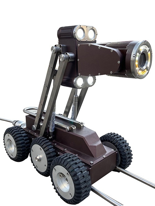 針對煤礦井下發(fā)生事故后,救援人員不能及時了解現(xiàn)場情況的問題,設計并研制了一種鉆孔救援機器人,該產(chǎn)品是由爬行器(攝像頭)、鉆孔自動(手動)盤線車、無線系統(tǒng)控制器 (電腦端)、電源適配器等部分組成,通過操作主控制機器人界面,可實現(xiàn)控制爬行器在孔內(nèi)行走,并將釆集到的救援孔內(nèi)部圖像通過線纜實時傳輸?shù)街骺刂破鬟M行實時監(jiān)視,配合判圖軟件一鍵生成檢測報告。檢測系統(tǒng)還配有專業(yè)的控制軟件,可運行在windowslO系統(tǒng)上控制本套檢測機器人??蛇M行圖像存儲。監(jiān)視圖像時如果發(fā)現(xiàn)人與物體,可以通過錄像或拍照記錄出來以便對其判斷、分析。在主控制器的顯示界面上,可以隨時了解爬行器的狀態(tài),包括傾角、氣壓、距離、速度、平臺高度、日期等相關信息。該裝置也可用于其他地質(zhì)鉆井探測中,基于礦山鉆孔救援探測需求,針對現(xiàn)有探測機器人信息探測范圍窄、探測距離較短、功能單一、無越障能力等問題,設計出礦山鉆孔救援探測機器人。